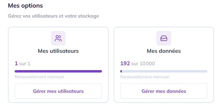 Pour importer plus de 10 000 points sur votre carte, rendez-vous dans “Mon Profil” > “Mon abonnement” pour ajuster votre limite d’import.