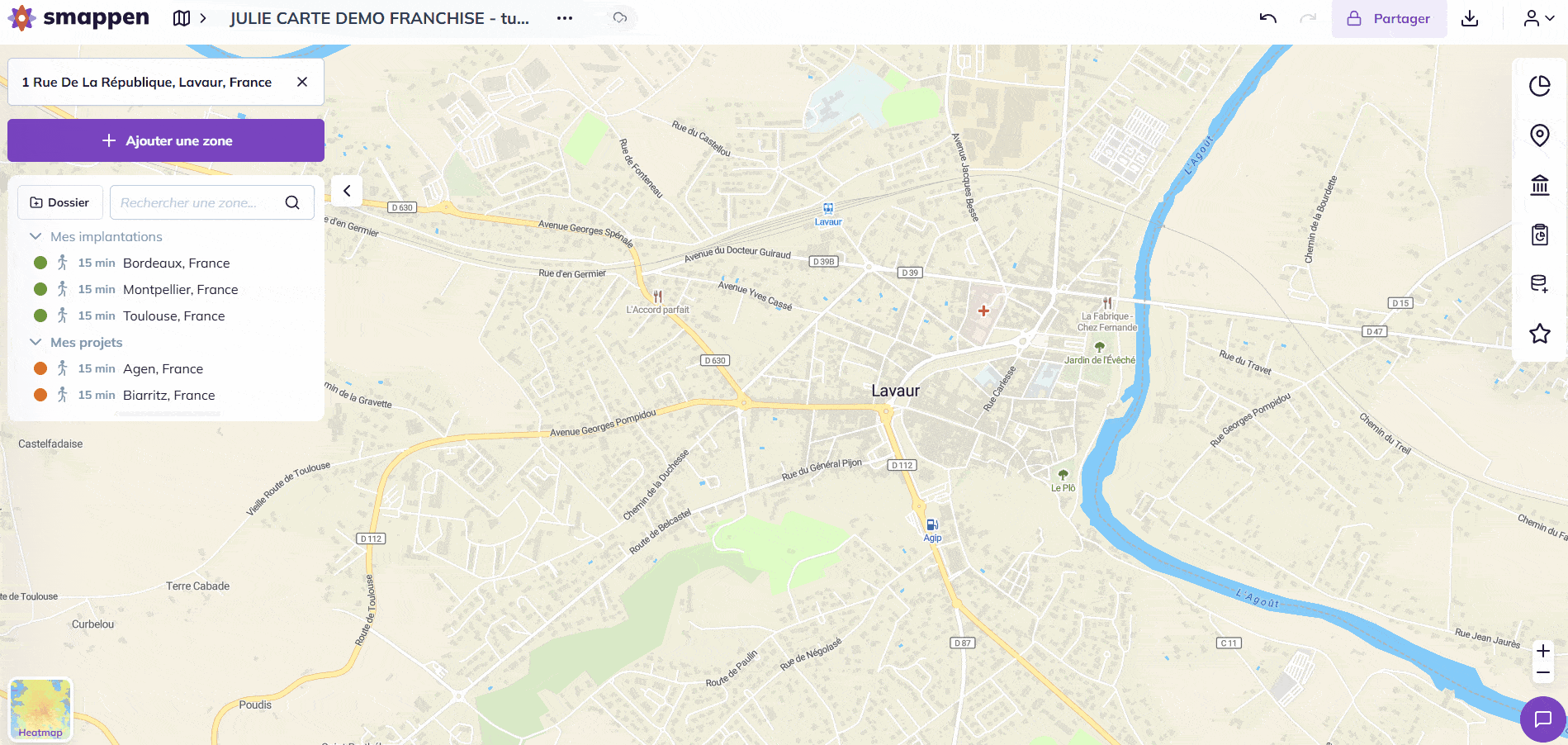 smappen vous permet d’exporter vos zones au format KML.