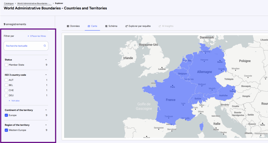 Attention : pensez à filtrer les résultats de recherche dans Opendatasoft afin de télécharger uniquement les zones qui vous intéressent. En effet, au-delà de plusieurs centaines de zones, l’affichage de la carte smappen sera fortement ralenti et l’utilisation pourra devenir inconfortable.