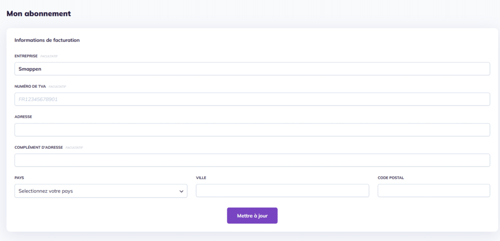 Vous pouvez à tout moment consulter et modifier vos informations de facturation.