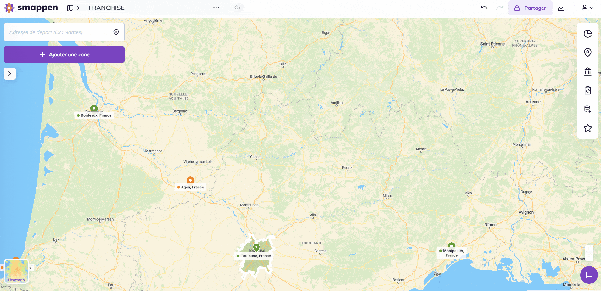 Les marqueurs disparaissent pour ne laisser visibles que les zones de la carte.