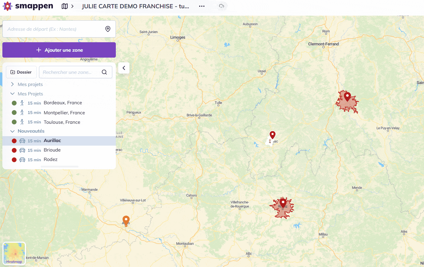 Pour supprimer un dossier et toutes les zones qu’il contient, allez sur le panneau de gestion des zones, et cliquez sur le bouton de suppression à droite du dossier :