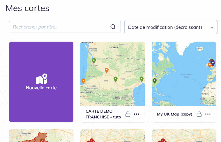 Pour supprimer une carte, rendez-vous sur l’icône en forme de carte située en haut de votre écran :