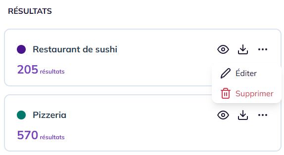 Pour supprimer une recherche, cliquez sur les « … » à droite de la recherche concernée puis cliquez sur « Supprimer »