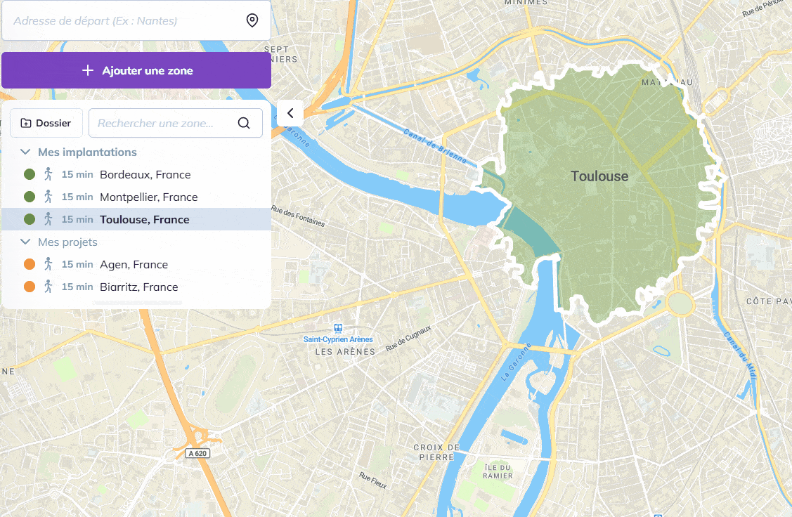 1. Supprimer la zone directement depuis la carte avec un clic droit puis « Supprimer ».