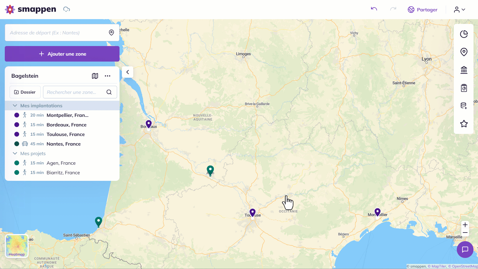 Contrairement à d’autres franchiseurs, Smappen n’est pas un outil que nous utilisons dans notre processus d’accompagnement au recrutement. Il se fait selon la demande qui arrive et qui est plutôt conséquente.